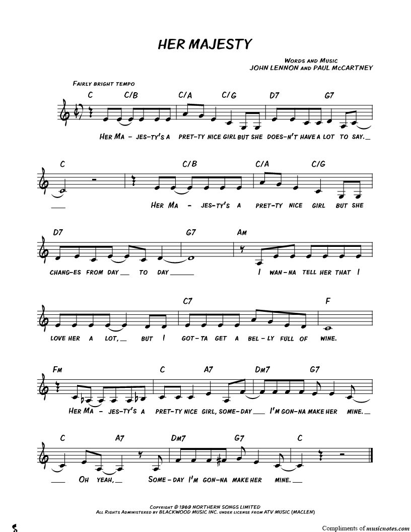 Her Majesty's a pretty nice girl but she doesn't have a lot to say. |