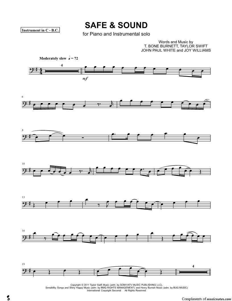 Bass Clef Instrument, range: B2-D4 (Cello, Double Bass, Trombone, Bassoon or Baritone Horn) | |