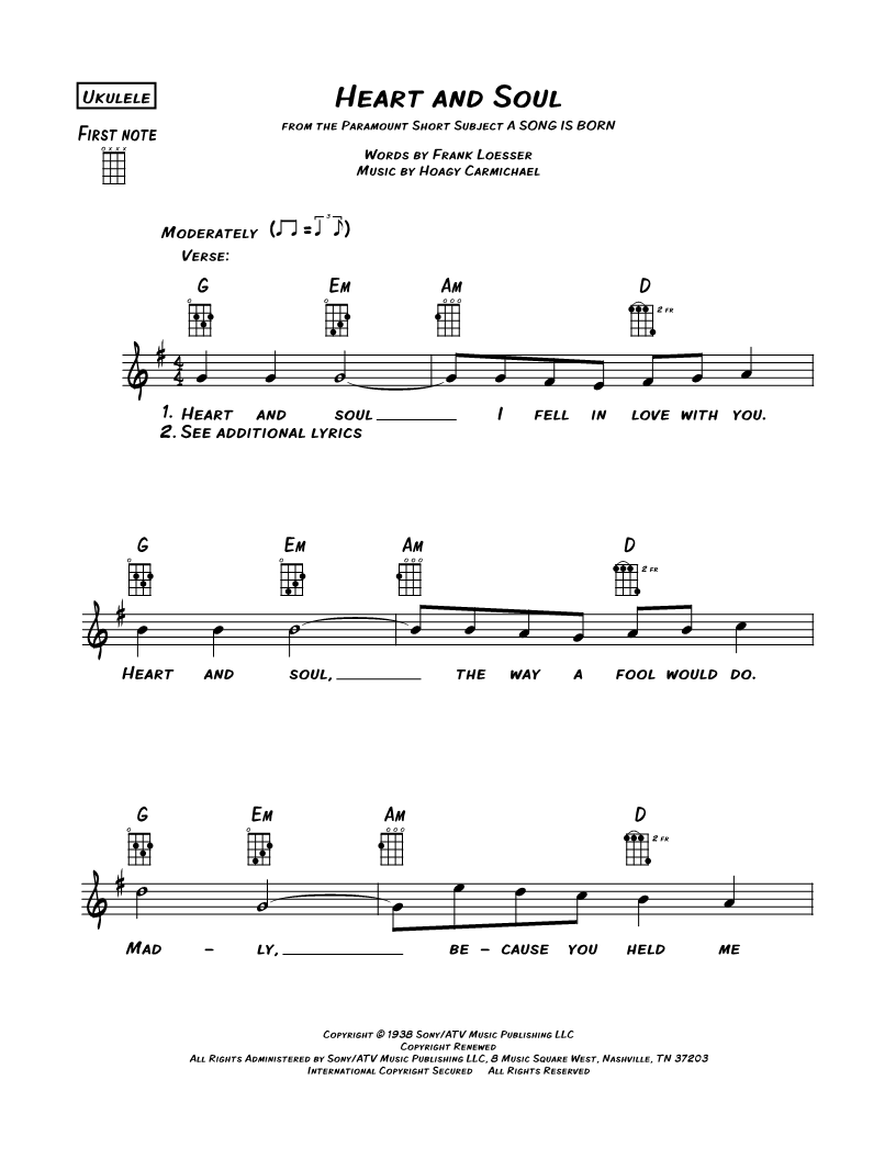 Ukulele/Vocal/Chords Leadsheet |
