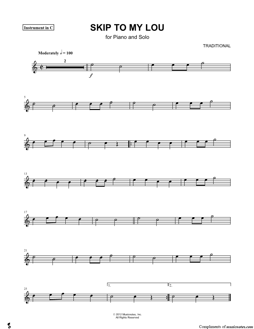 Skip To My Lou - C Instrument |