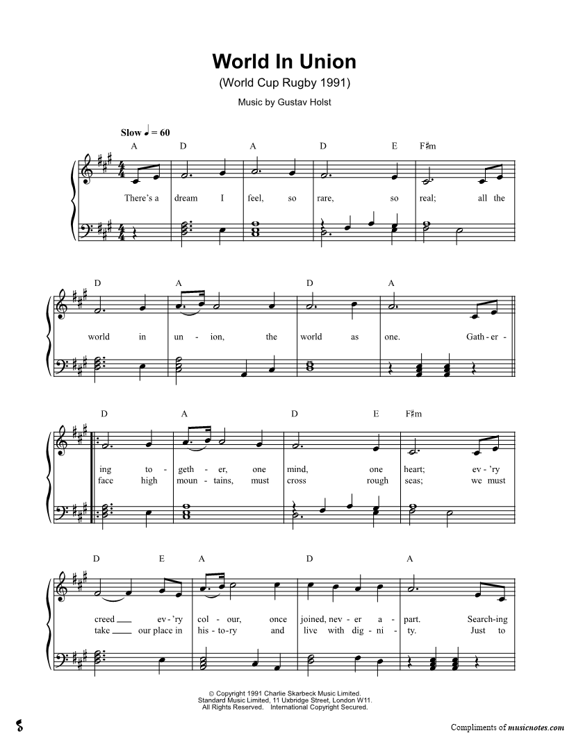 There's a dream I feel, so rare, so real; all the world in union, the world as one. |