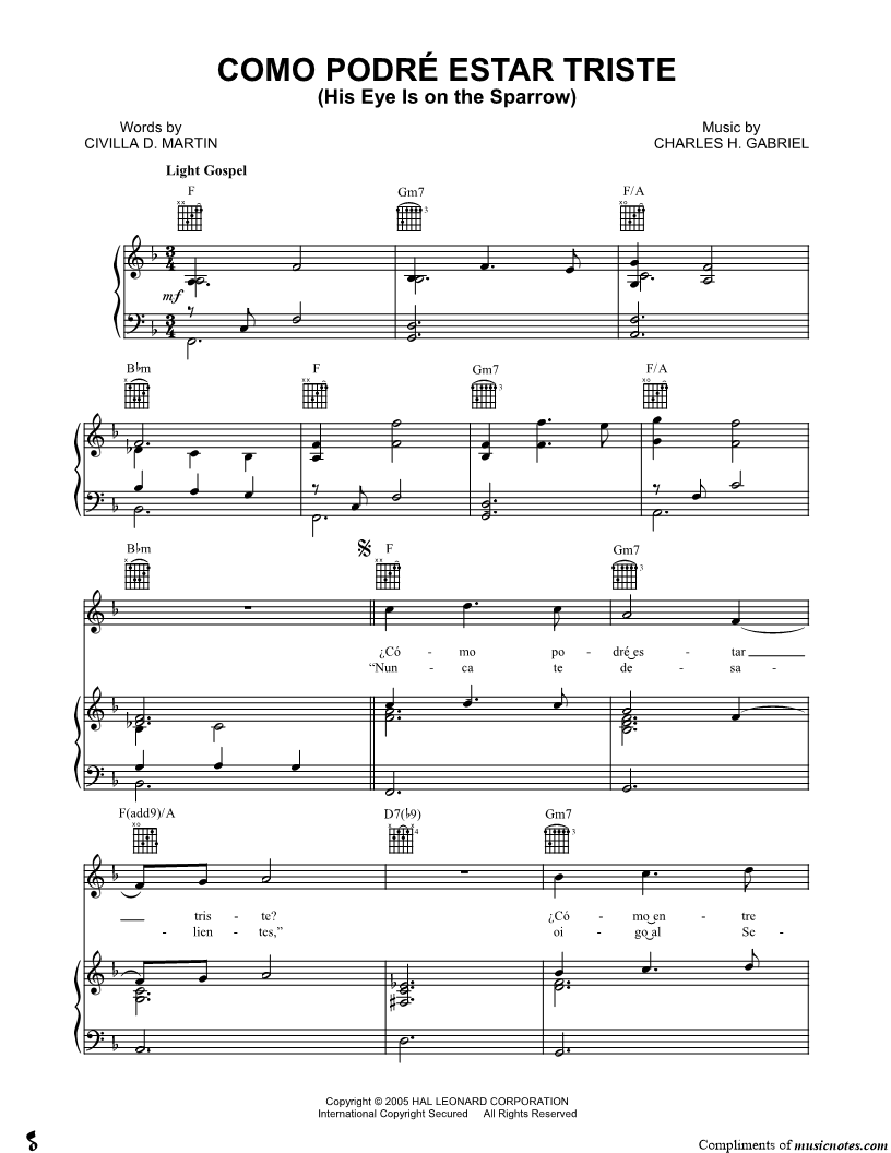 Como Podré Estar Triste (His Eye Is on the Sparrow) |