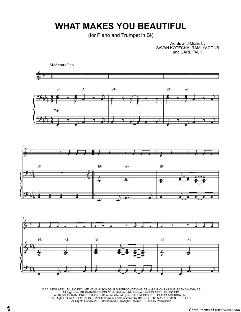 What Makes You Beautiful - Piano Accompaniment (Trumpet) |