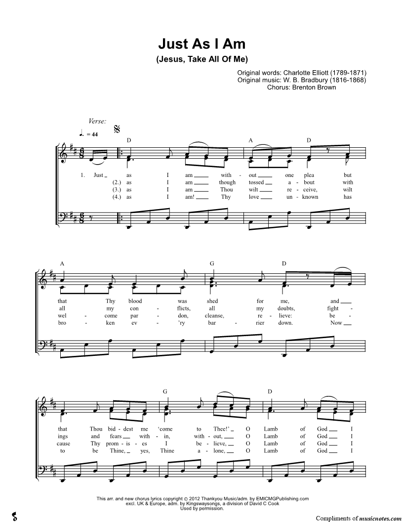 Just as I am without one plea but that Thy blood was shed for me, and that Thou biddest me 'come to |