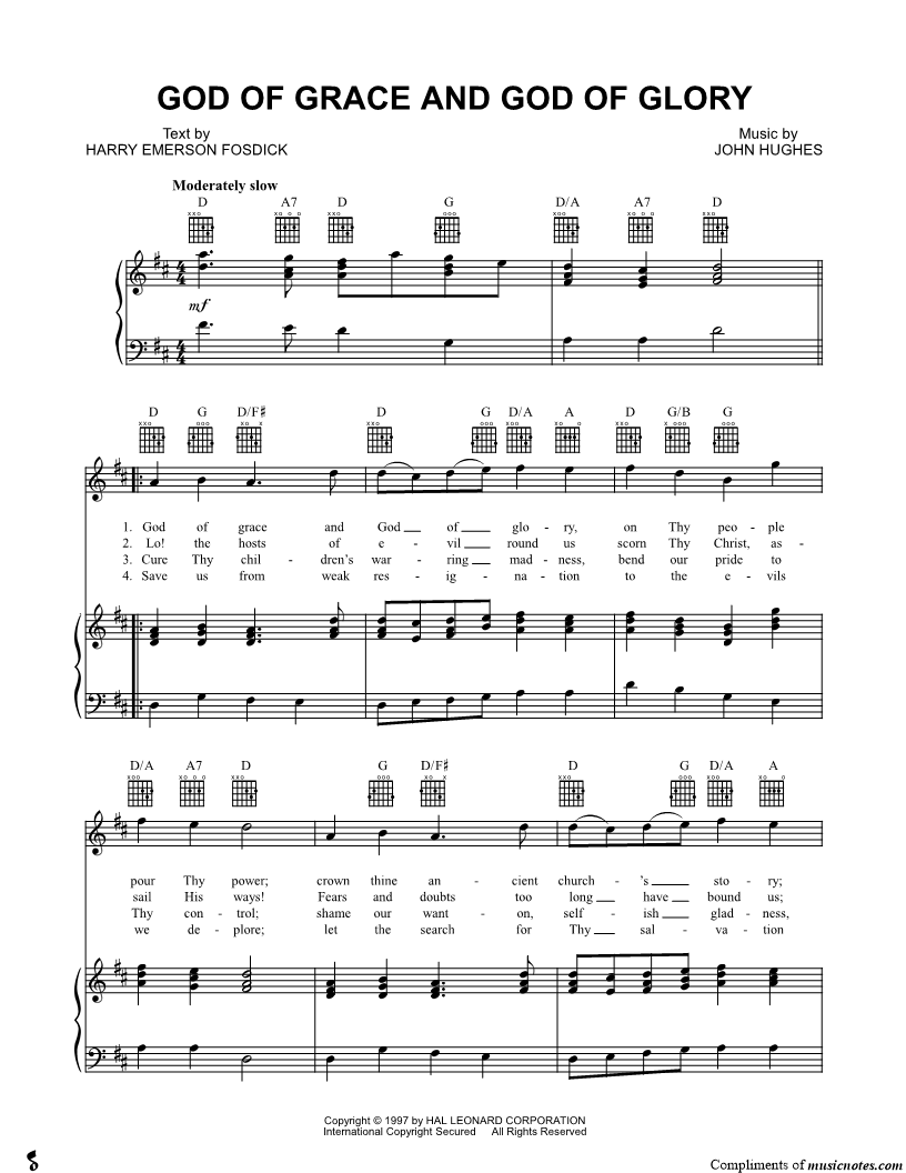 God of grace and God of glory, on Thy people pour Thy power; crown thine ancient church's story; bring her bud to glorious flower. |