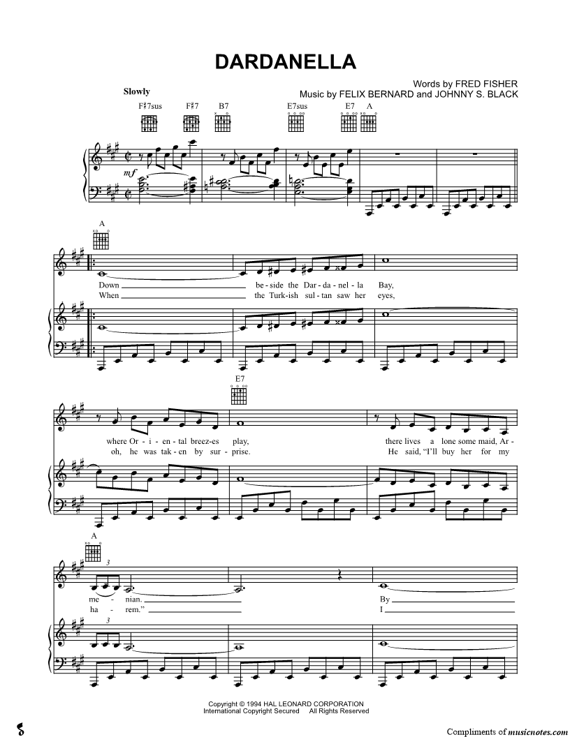 Down beside the Dardanella Bay, where Oriental breezes play, there lives a lone some maid, |