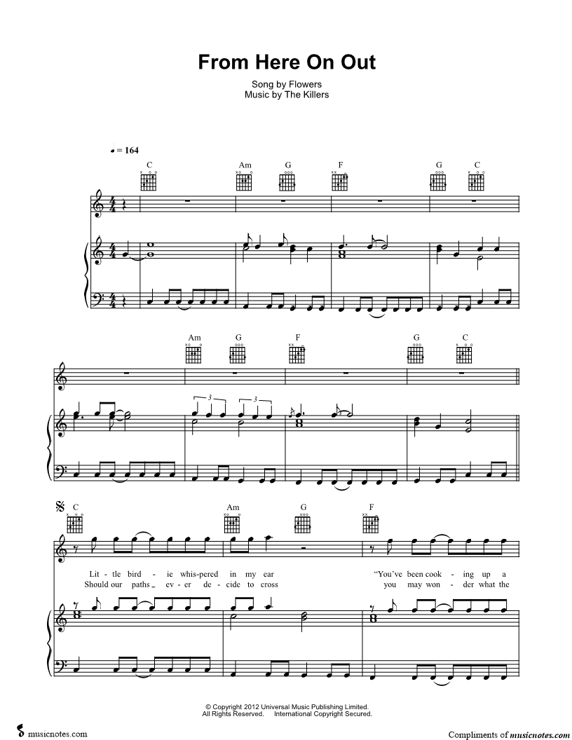 Musicnotes sells a wide variety of digital sheet music products including Singer Pros, Beginner Notes, Choral music, Piano Solos, Lead Sheets, Piano/Vocal/Guitar, Solo and Accompaniment, and fretted instrument tablature.