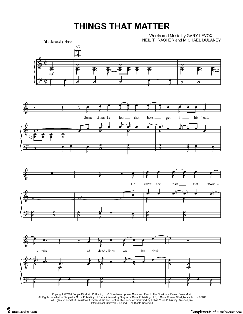 Musicnotes sells a wide variety of digital sheet music products including Singer Pros, Beginner Notes, Choral music, Piano Solos, Lead Sheets, Piano/Vocal/Guitar, Solo and Accompaniment, and fretted instrument tablature.