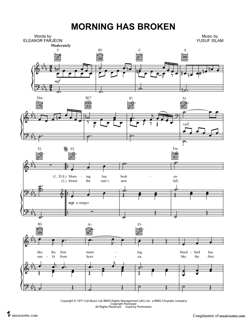 Morning has broken like the first morning, blackbird has spoken like the first bird. |