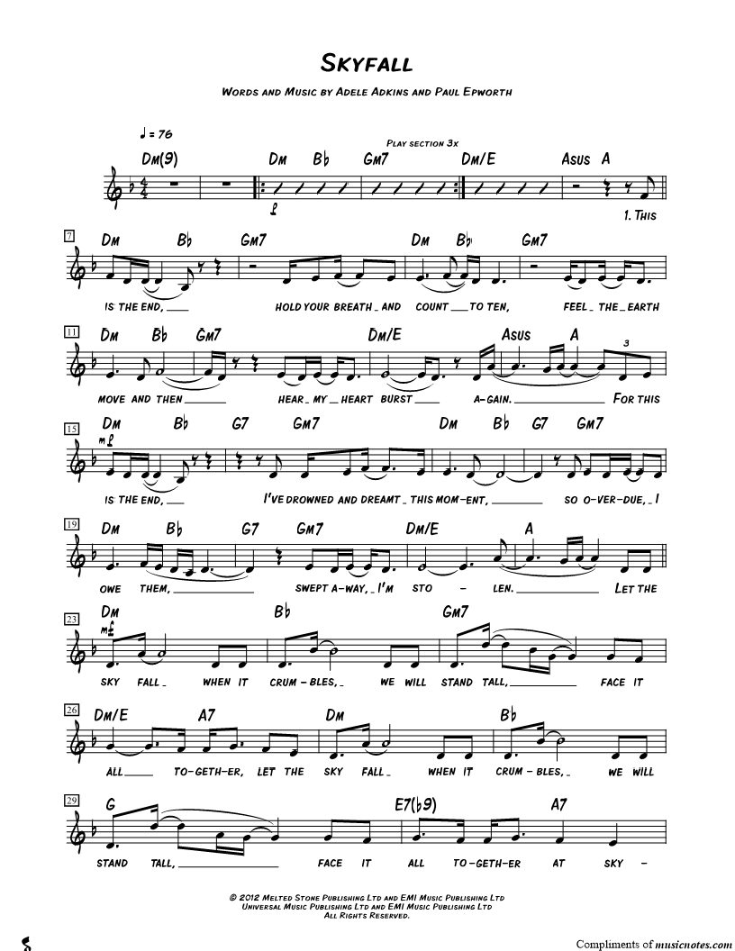 Leadsheets typically only contain the lyrics, chord symbols and melody line of a song and are rarely more than one page in length. Musicians will often use these skeletons to improvise their own arrangements. Leadsheets often do not contain complete lyrics to the song.