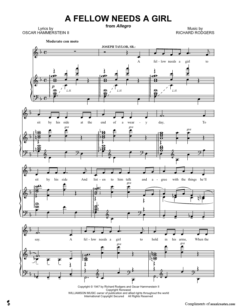 A fellow needs a girl to sit by his side at the end of a weary day, |