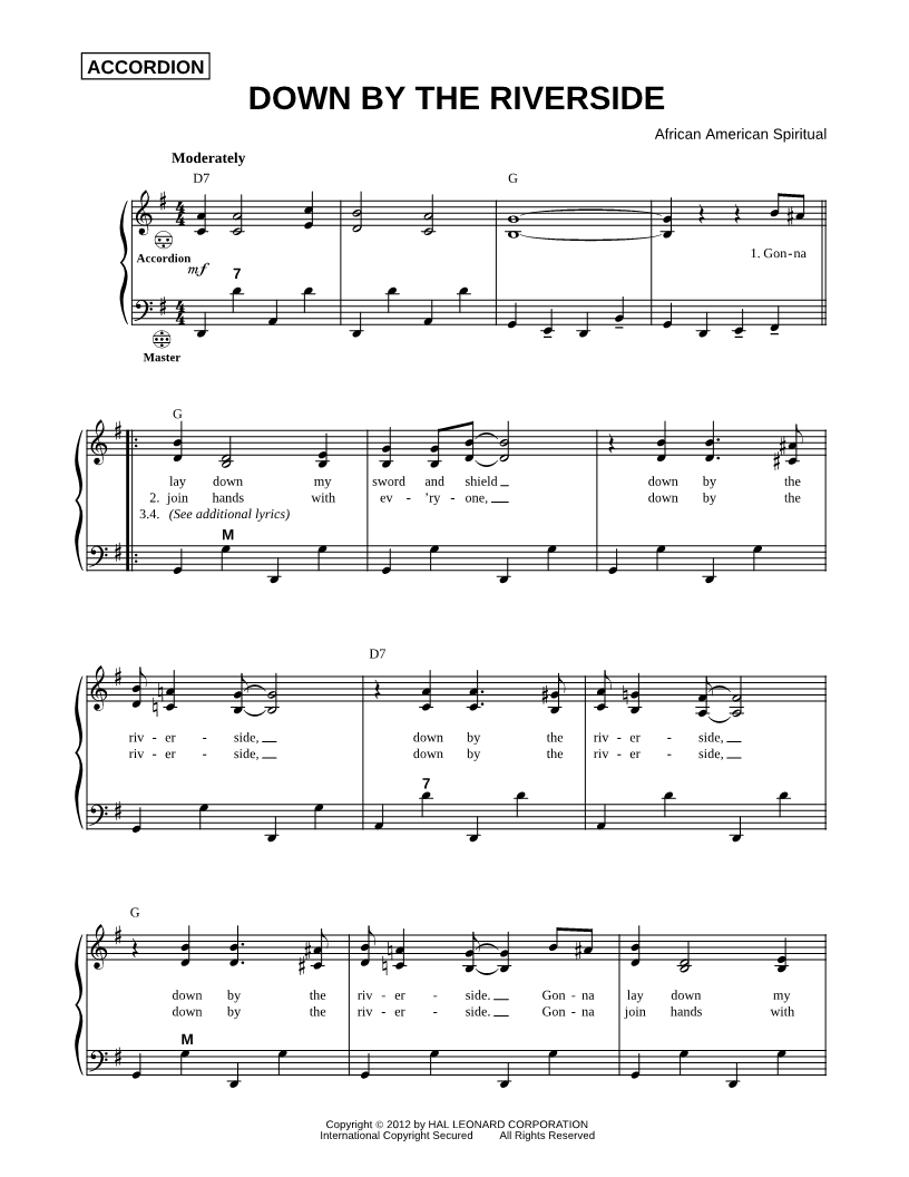 Gonna lay down my sword and shield down by the riverside, down by the riverside, down by the riverside. |