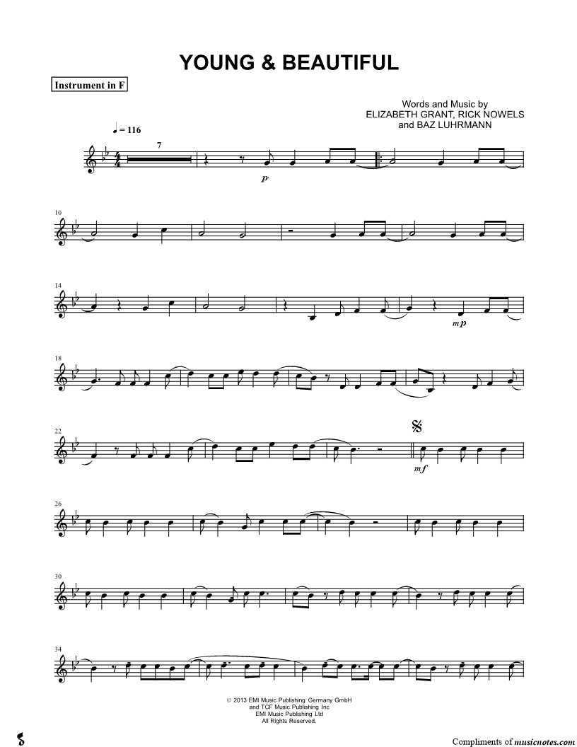 Young & Beautiful - F Instrument |