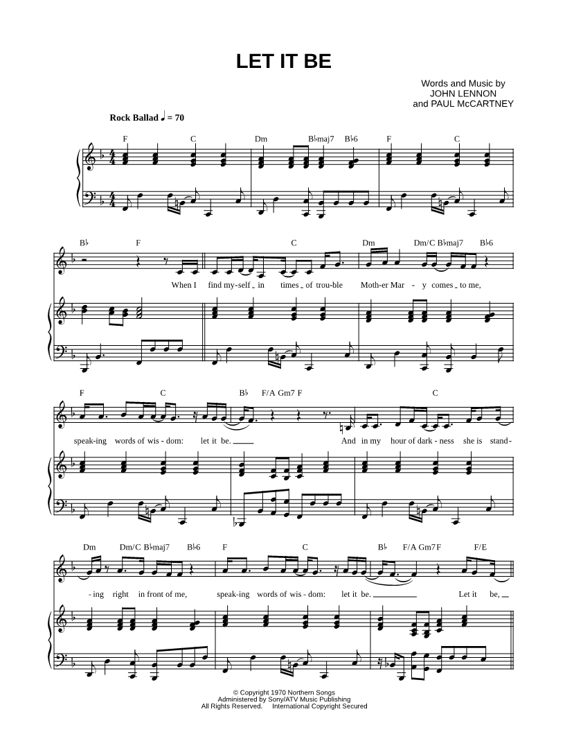 When I find myself in times of trouble Mother Mary comes to me, speaking words of wisdom let it be. |