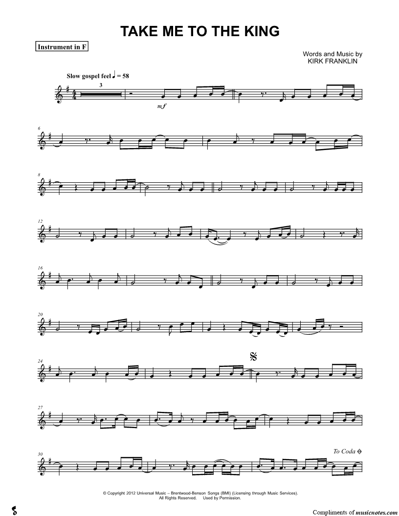 Take Me to the King - F Instrument |