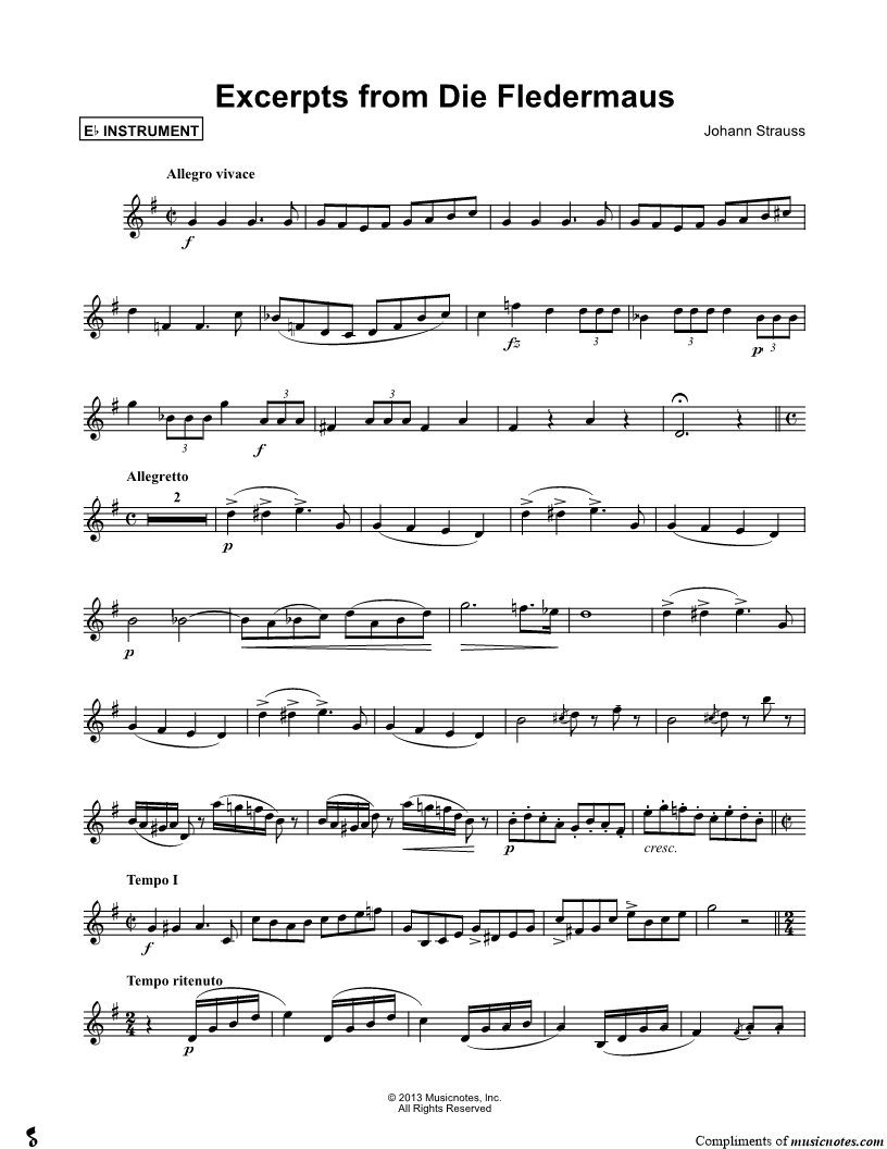 Excerpts from Die Fledermaus - Eb Instrument |