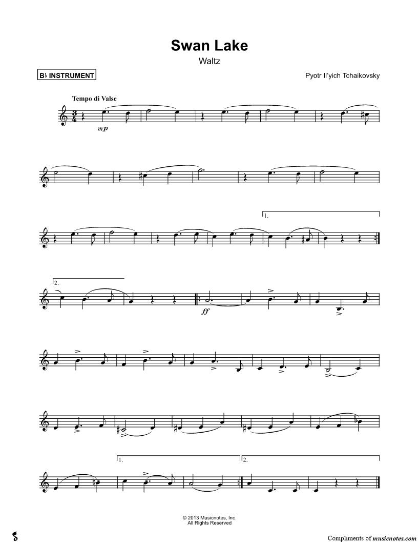 Swan Lake, Op. 20 (Waltz) - Bb Instrument |