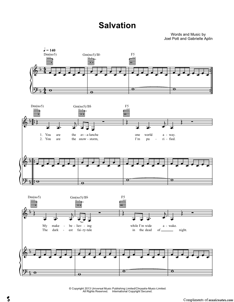 Voice, range: F3-D5 Piano Guitar | |