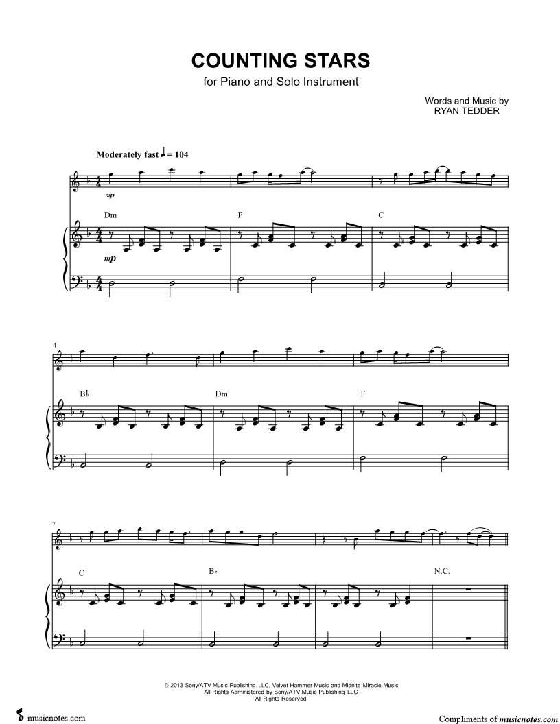 Collection: Counting Stars - C Instrument & Piano