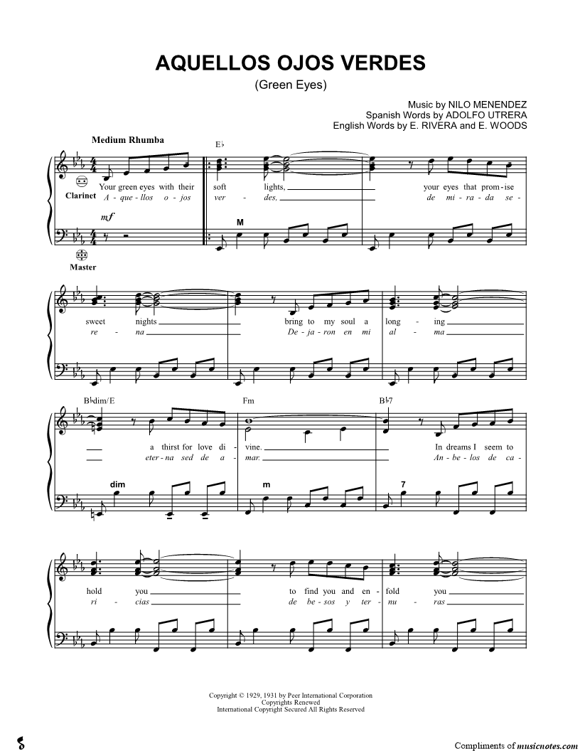 Your green eyes with their soft lights, your eyes that promise sweet nights bring to my soul a longing a thirst for love divine. |