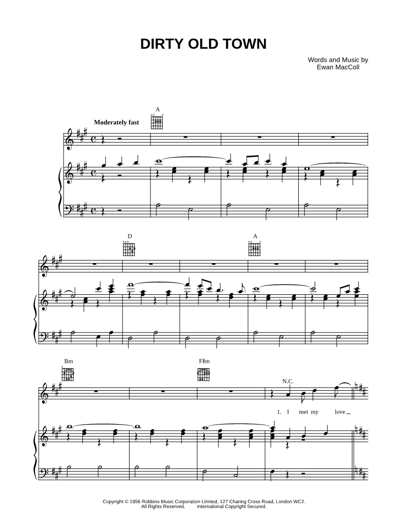 I met my love by the gasworks wall, dreamed a dream by the old canal I kissed my girl by the factory wall, dirty old town, dirty old town. |