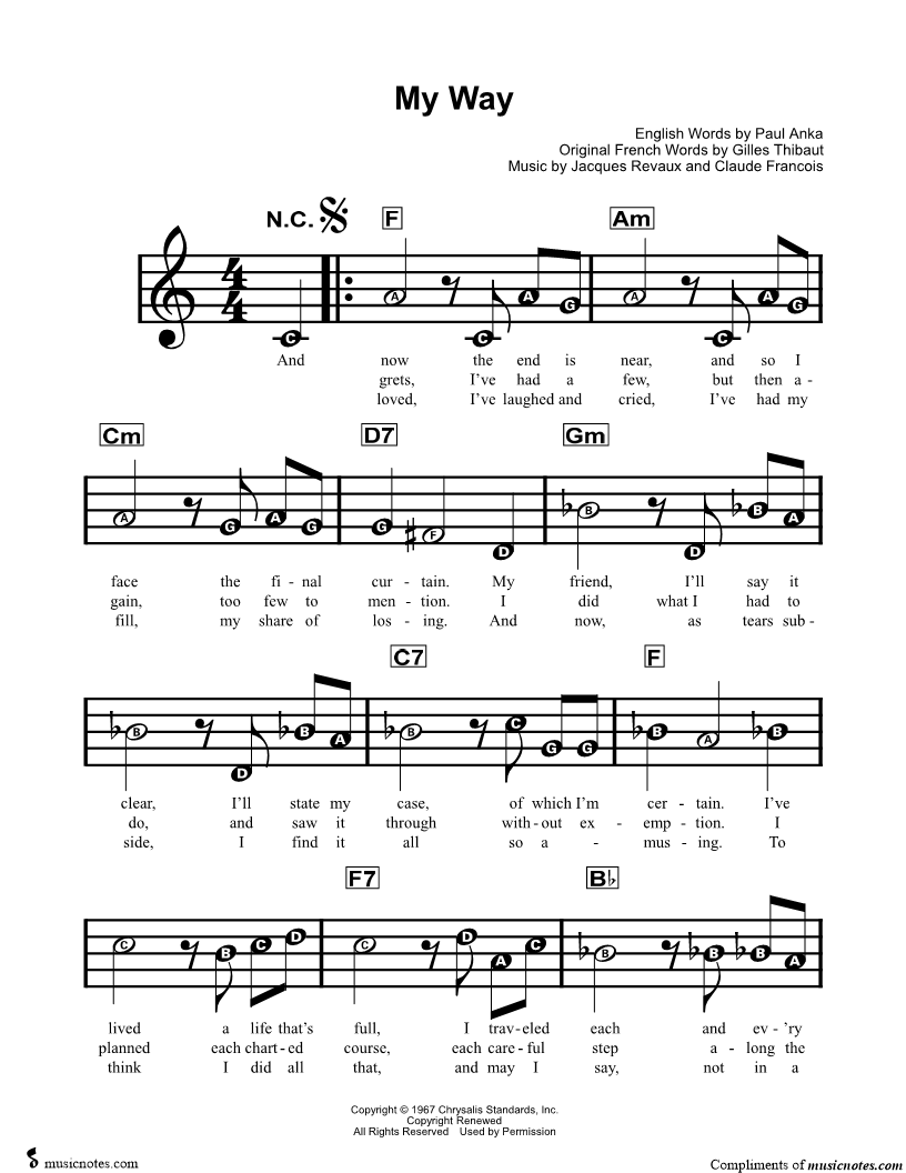 And now the end is near, and so I face the final curtain. |