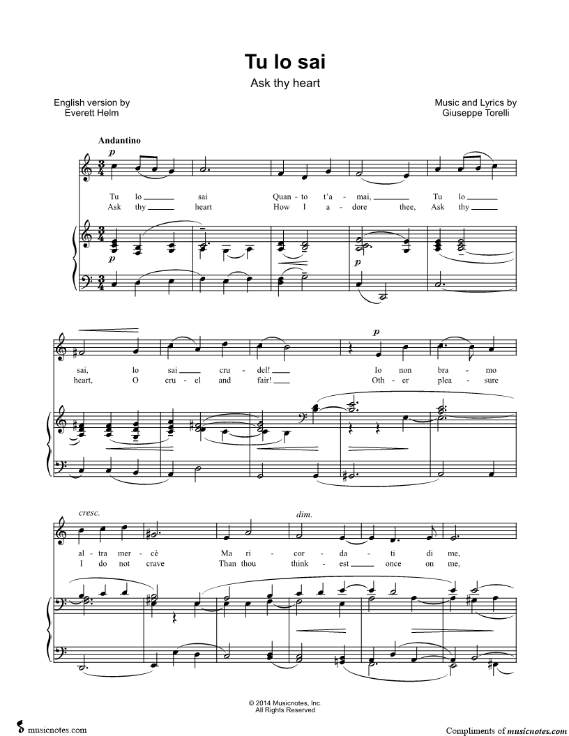 Tu lo sai Quanto t'amai, |