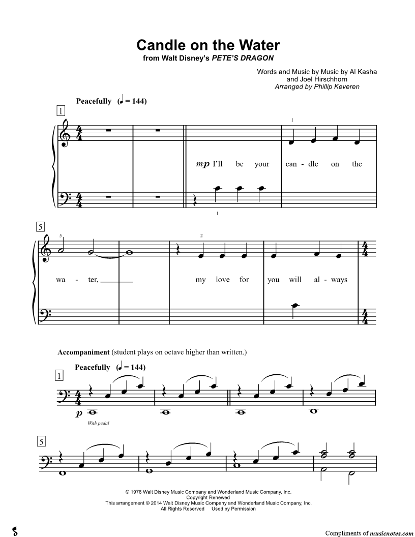 Many of the arrangements on Musicnotes have transpositions available, typically in C Major, as well as 3 sharps and 3 flats. If you do not see your desired key, you can request a transposition by reaching out to Customer Support.