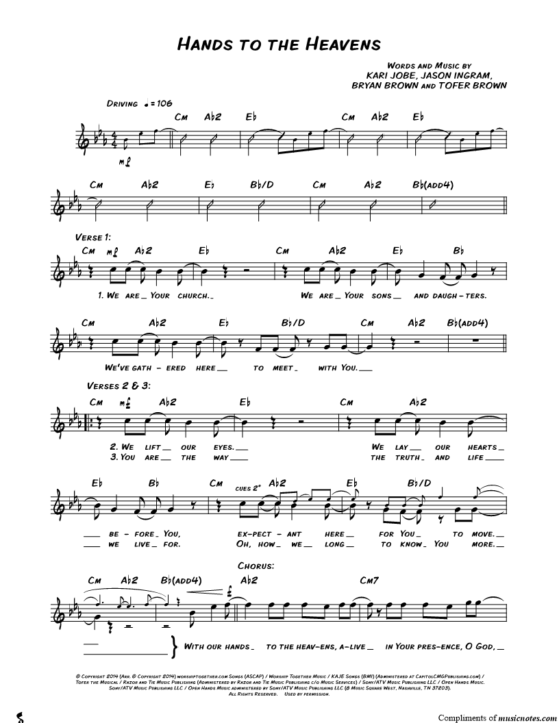 Many of the arrangements on Musicnotes have transpositions available, typically in C Major, as well as 3 sharps and 3 flats. If you do not see your desired key, you can request a transposition by reaching out to Customer Support.