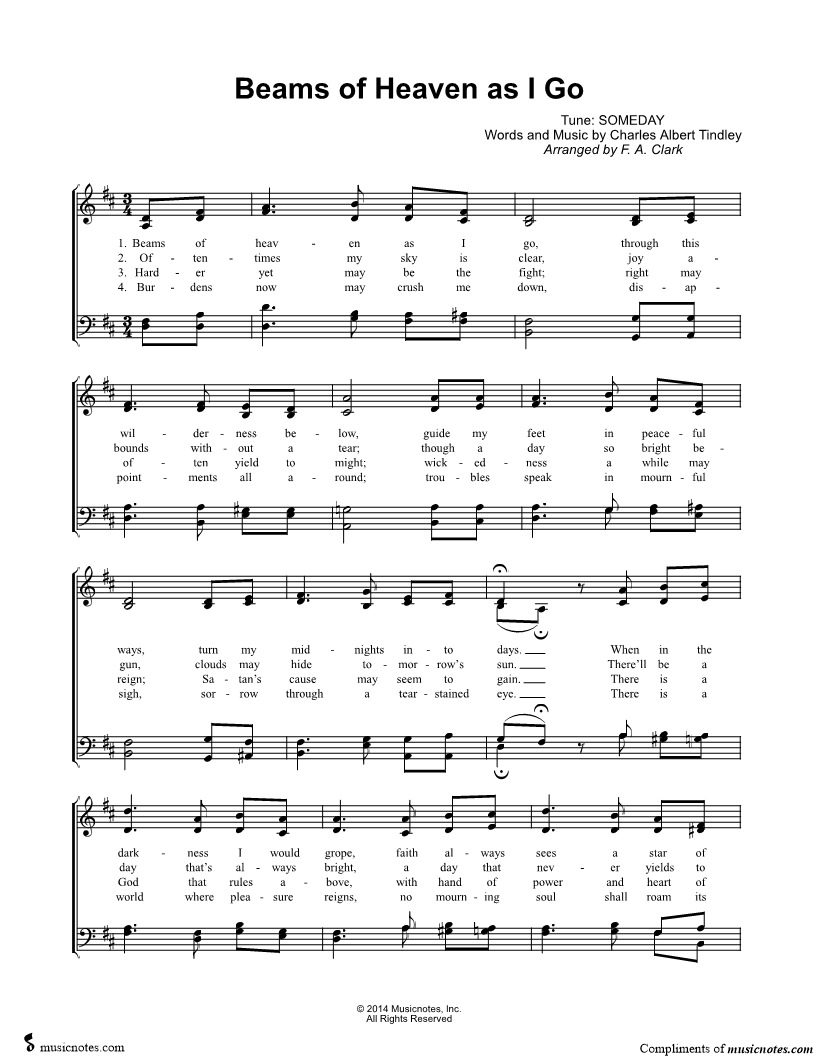 Beams of heaven as I go, through this wilderness below, guide my feet in peaceful ways, turn my midnights into days. |