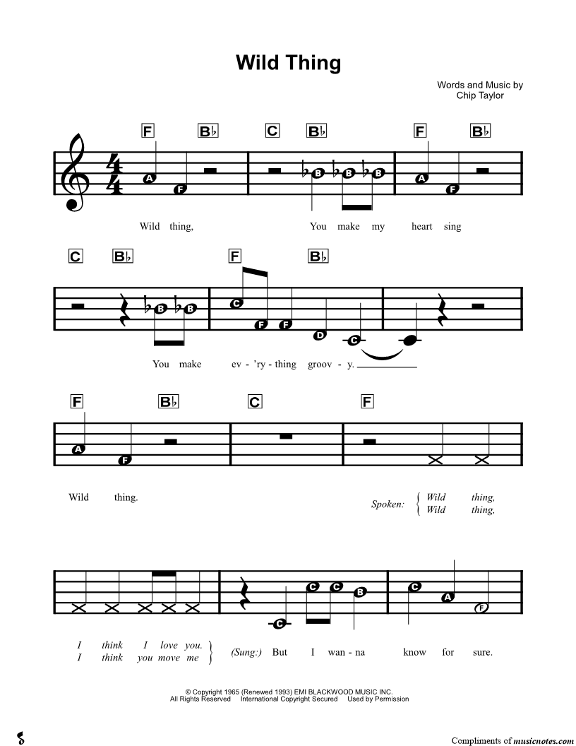 Wild thing, You make my heart sing |