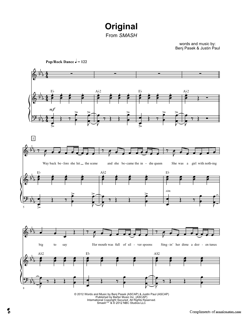 Musicnotes sells a wide variety of digital sheet music products including Singer Pros, Beginner Notes, Choral music, Piano Solos, Lead Sheets, Piano/Vocal/Guitar, Solo and Accompaniment, and fretted instrument tablature.