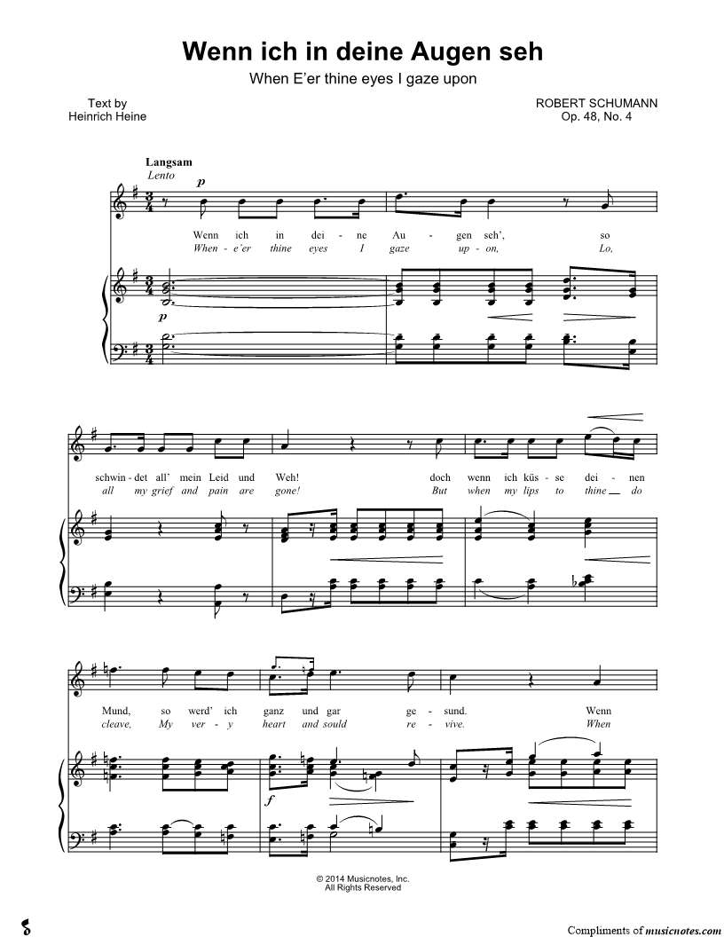 Wenn ich in deine Augen seh', so schwindet all' mein Leid und Weh! |