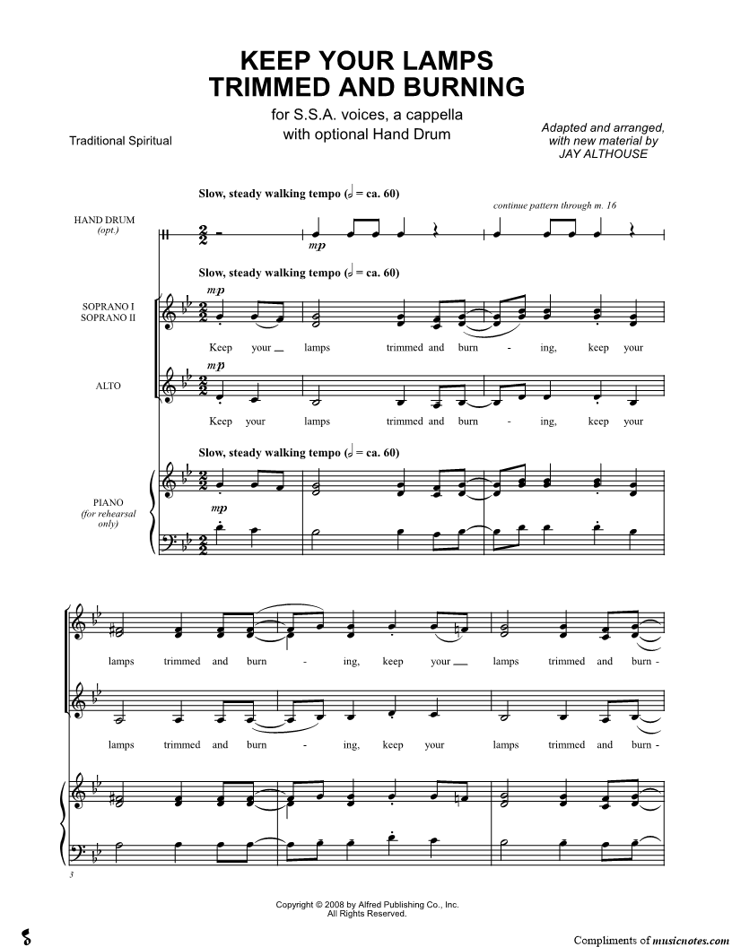 Keep your lamps burning, keep your lamps burning, keep your lamps burning, |