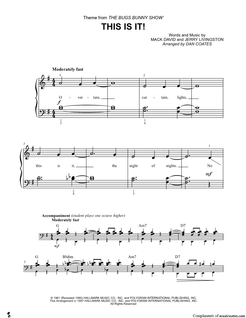 1 Piano 4-Hands Instrumental Duet Piano/Vocal/Chords |