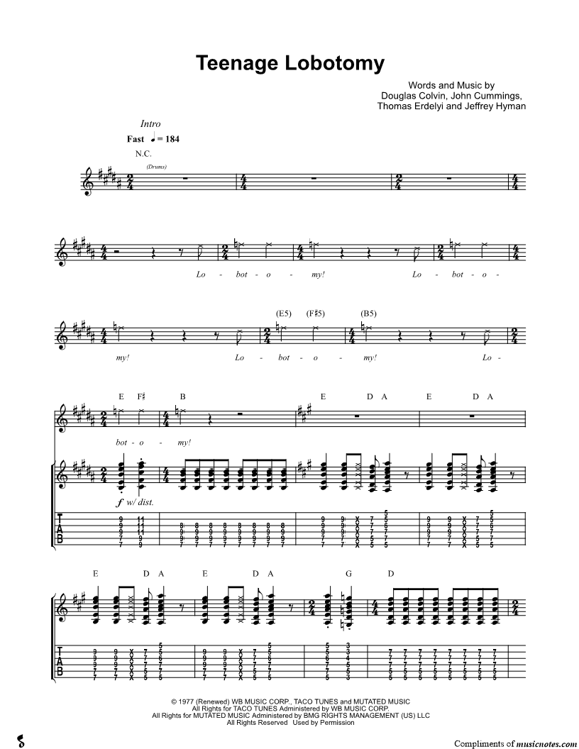 Guitar TAB Guitar/Vocal |