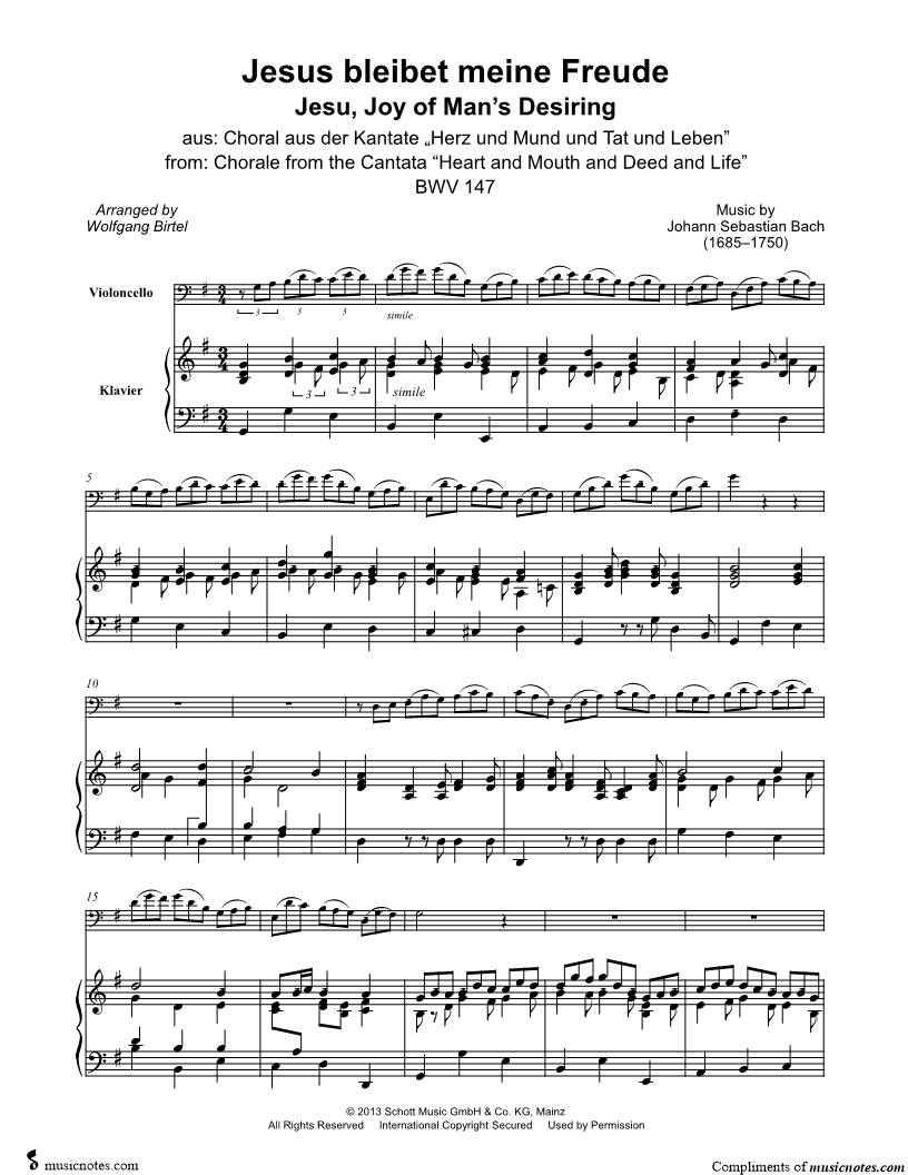 Jesu, Joy of Man's Desiring - Cello & Piano |