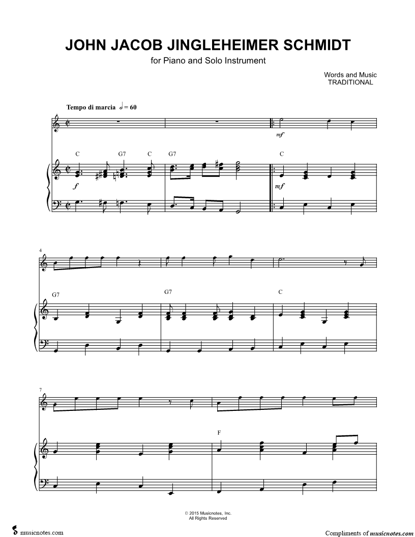 John Jacob Jingleheimer Schmidt - C Instrument & Piano