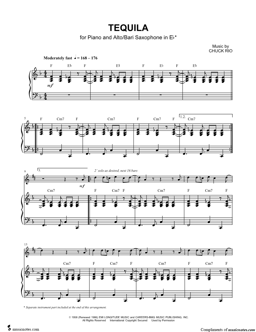 Tequila - Eb Saxophone & Piano |