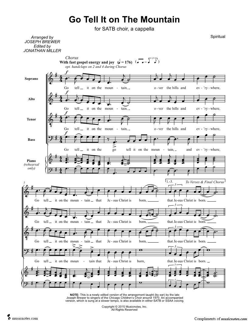 Go tell it on the mountain, over the hills and ev'rywhere, |