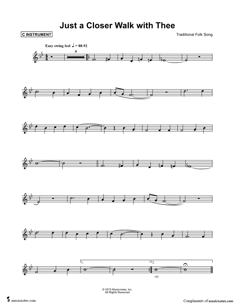 Just a Closer Walk with Thee - C Instrument |
