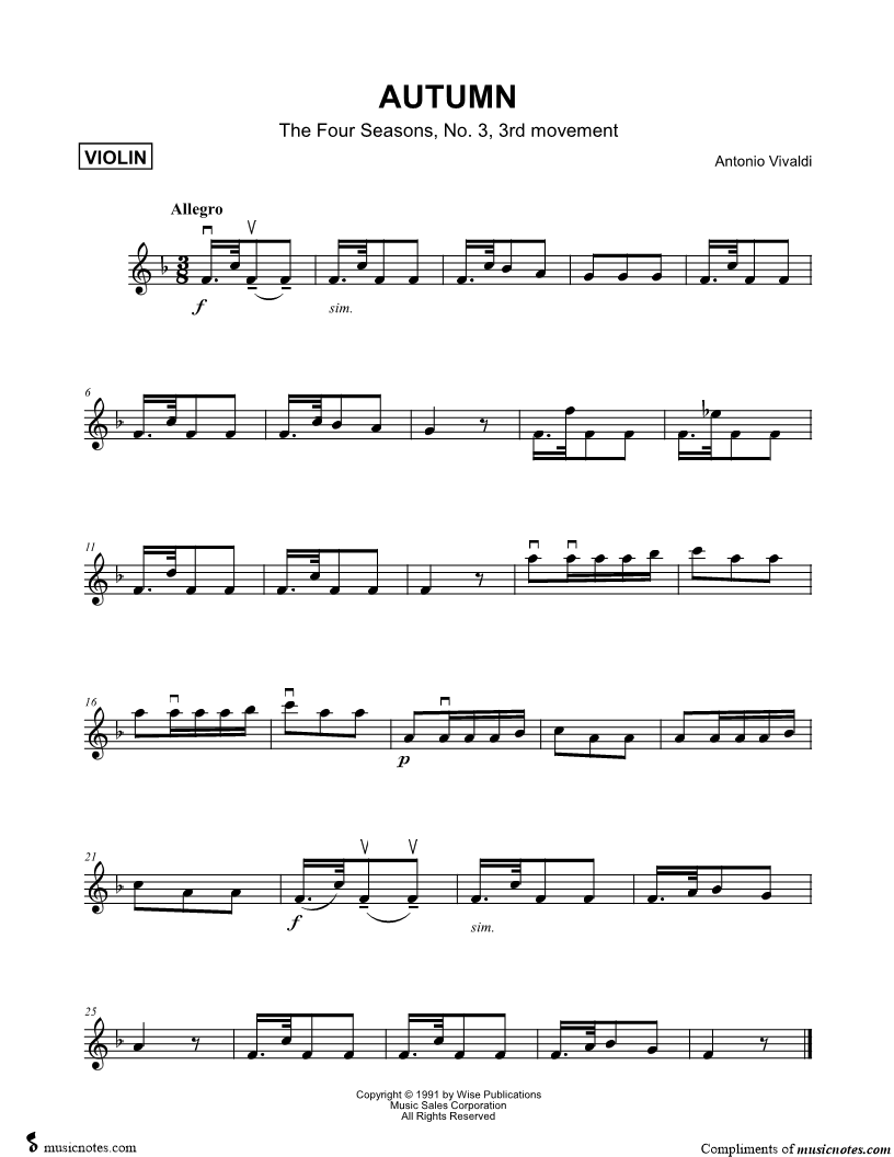 Autumn from The Four Seasons - Third Movement (Allegro) [Main Theme] |