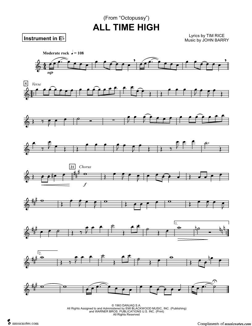 Eb Instrument, range: A4-D6 (Alto Saxophone or Baritone Saxophone) | |