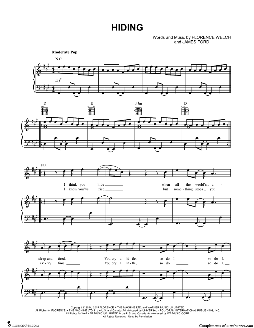 Musicnotes sells a wide variety of digital sheet music products including Singer Pros, Beginner Notes, Choral music, Piano Solos, Lead Sheets, Piano/Vocal/Guitar, Solo and Accompaniment, and fretted instrument tablature.