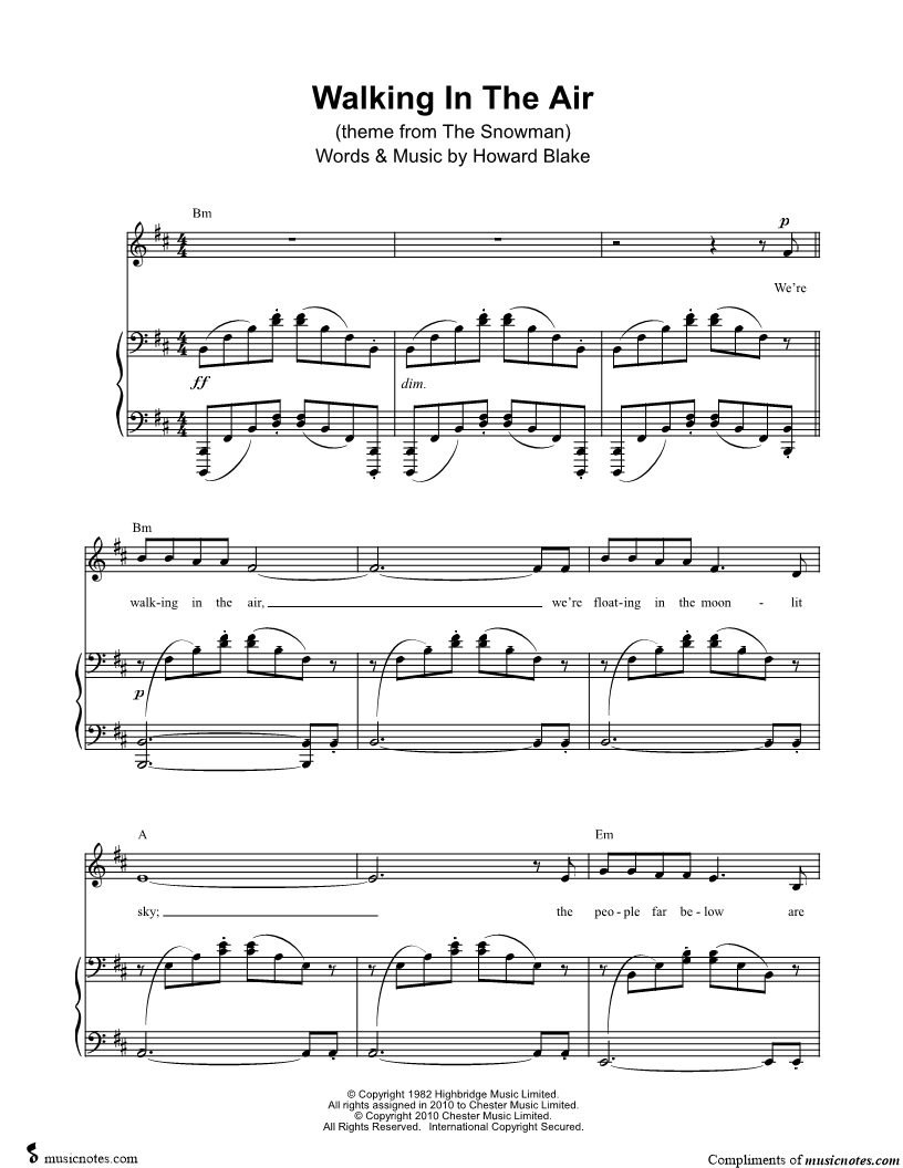We're walking in the air, we're floating in the moonlit sky; the people far below are sleeping as we fly. |