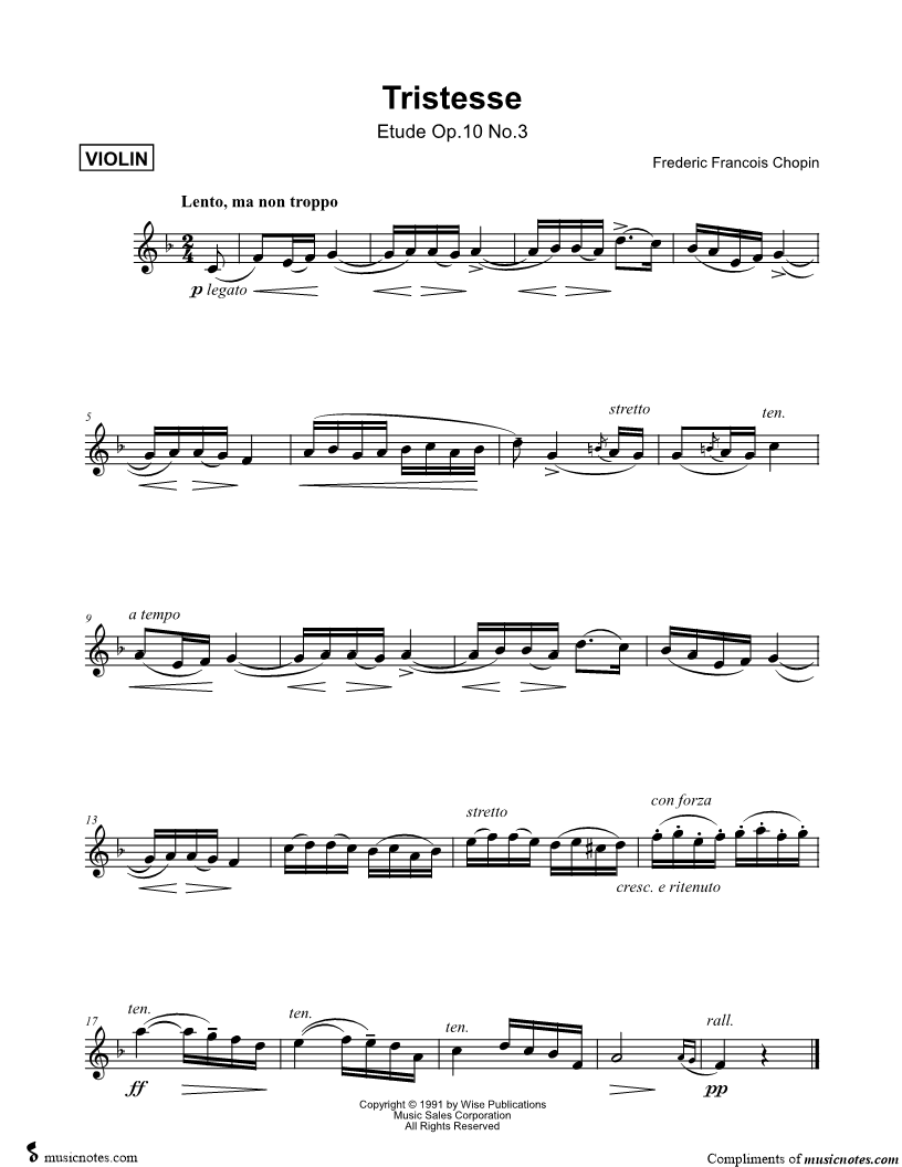 Tristesse from Étude, Op. 10, No. 3 [Main Theme] |