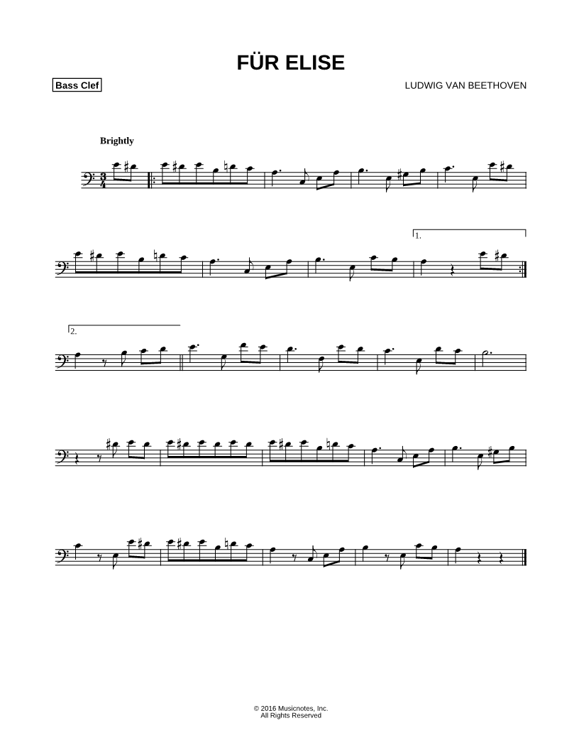 Tuba Bass Clef Instrument, range: C3-F4 (Cello, Double Bass, Trombone, Bassoon or Baritone Horn) | |