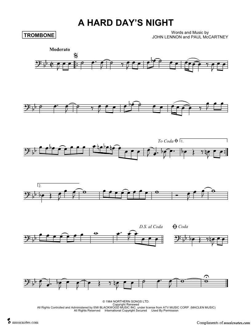 Trombone, range: Bb2-C4 | |