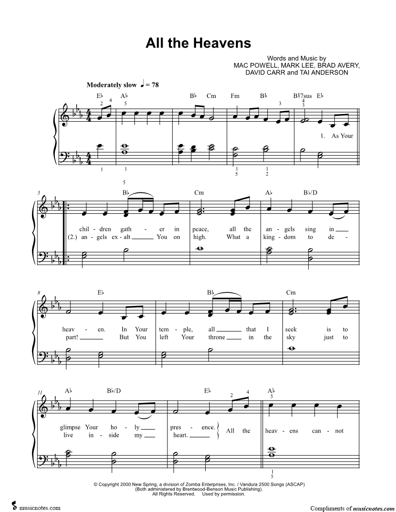 Many of the arrangements on Musicnotes have transpositions available, typically in C Major, as well as 3 sharps and 3 flats. If you do not see your desired key, you can request a transposition by reaching out to Customer Support.