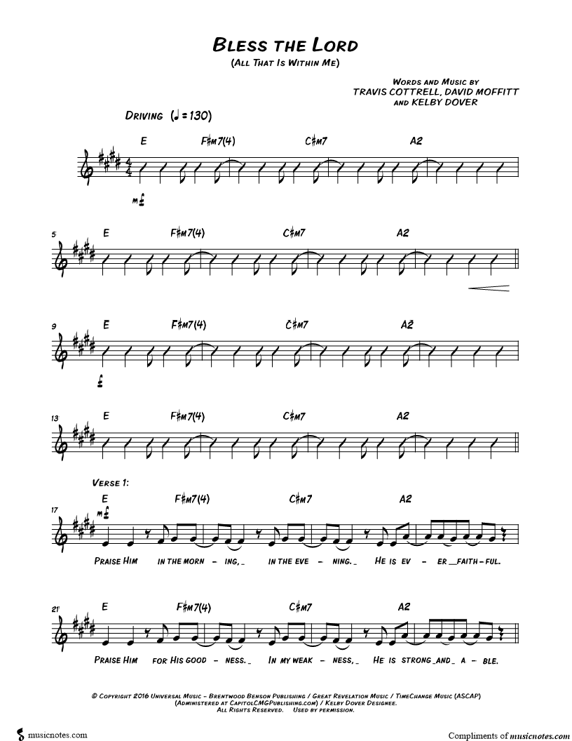 Many of the arrangements on Musicnotes have transpositions available, typically in C Major, as well as 3 sharps and 3 flats. If you do not see your desired key, you can request a transposition by reaching out to Customer Support.
